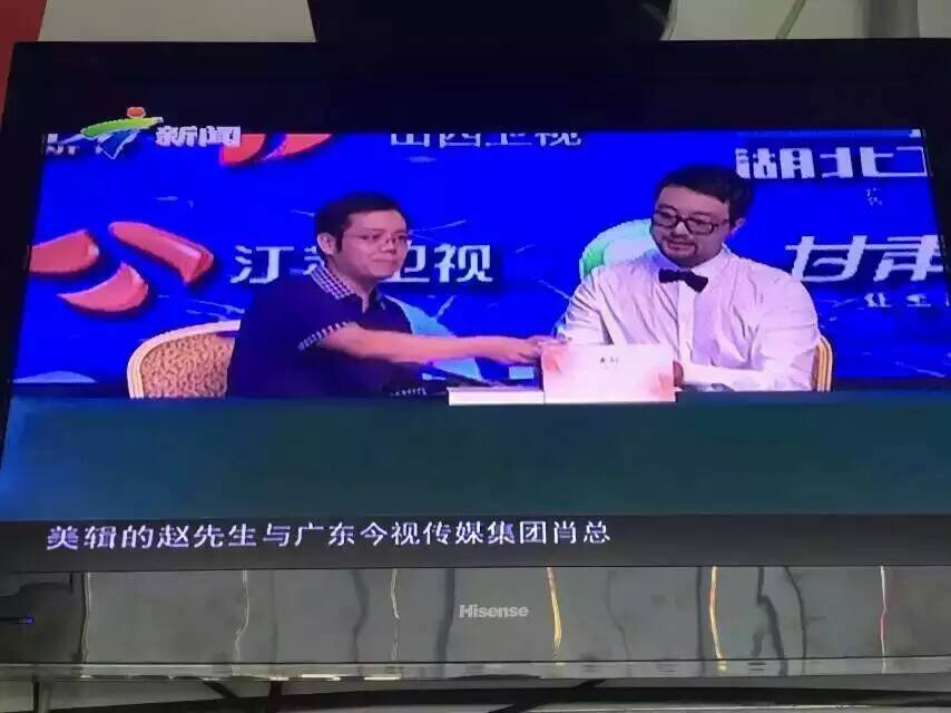 活动在今日上广东新闻频道啦 美辑的赵先生和广东今视传媒集团的肖总进行了现场的媒体签约