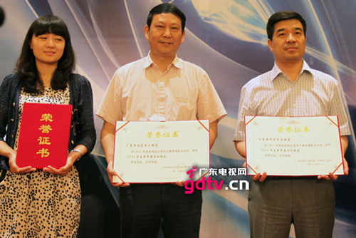 ![]() ![]() 广东电视台珠江频道总监林建平(中)接受颁奖