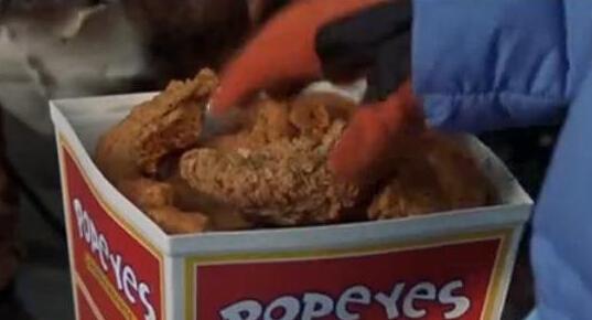 在恶魔接班人中,亚当桑德勒扮演了撒旦之子之一,长途跋涉来到地球只为拯救地球。尼基在地球第一次吃到了大力水手炸鸡,而且觉得它真的很好吃。大力水手炸鸡的商标随处可见,这个品牌更是被起码六次直接提到。高能预警,尼基甚至通过变出一大桶大力水手炸鸡来打败Adrian。