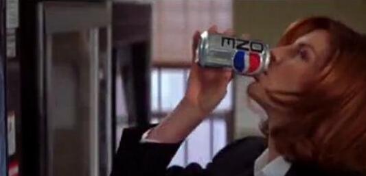 在布拉德皮特嘬着百事完成电影中的发呆镜头之前,蕾妮罗素就已经在电影天罗地网中这么干了,只不过她不是边发呆边喝,而是急急忙忙的喝下去。在这个镜头中,她饰演的角色十分口渴,于是她几乎一口就喝下了一听百事可乐,还有意无意的把百事可乐的标志对着镜头。多么高明啊!