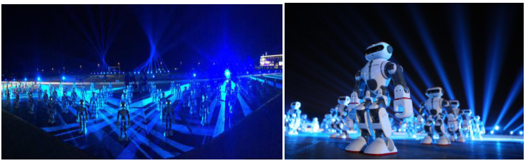 整场表演在108台智能机器人的炫酷开场舞中正式拉开了帷幕。随后2台大型8轴无人机率领6台中型4轴无人机缓缓升空,高低错开,并从机上燃放加挂的喷泉烟花,瞬间把夜空照亮。各机种献演编队飞行、自由飞翔、凌空追击、正飞、侧飞、连续横滚、落叶飘、眼镜蛇翻滚、吊机悬停等高难度动作大显“国际范儿”,让观众目不暇接,叹为观止。晚上十点,演出所有的航模飞机再次升空,三架超大型无人机在上百米瞬间打开空投仓,搭载着的近千个带着荧光灯的降落伞缓缓的从天而降,璨若星河,将此次夜航表演推向高潮。值得一提的是,演出当晚用的智能机器人、四轴无人机、坦克、穿越机等均是澄海“智造”产品。